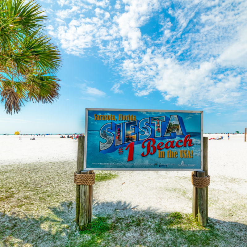 Meanwhile, Siesta Key lies just off the coast from Sarasota and its beach is the top rated beach in Florida.