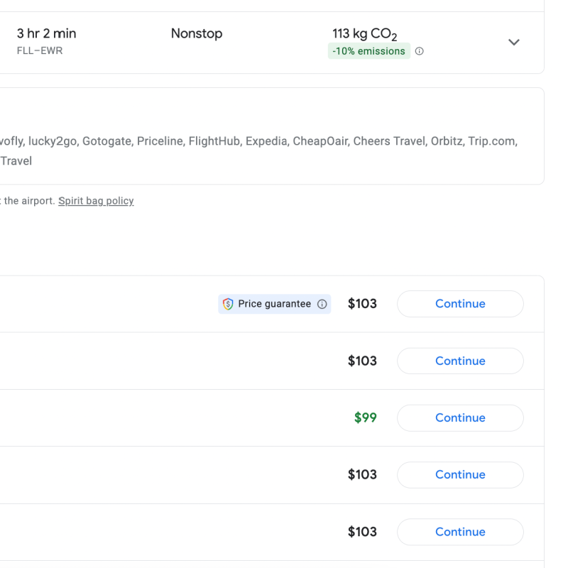 Google Flights typically shows you the option to book directly with the airline or to book through a third-party travel agency. If there is an option to book with a third-party travel agency, you should also see the option for “Book with Google.”